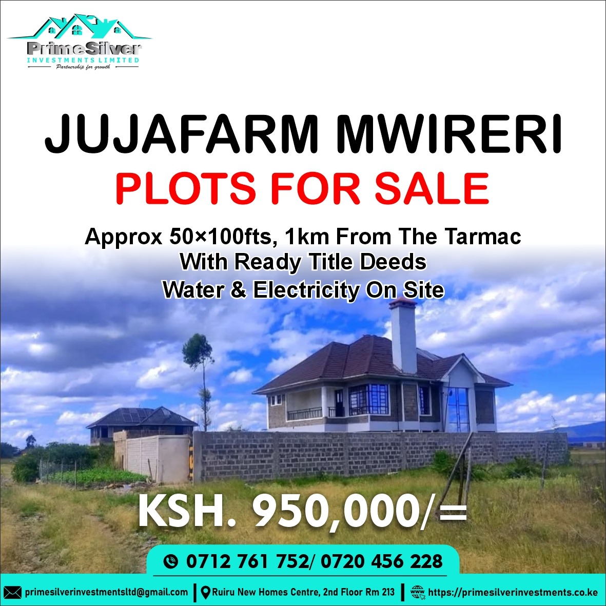 Discover this prime ⅛ acre plot located in the fast-growing Juja Farm – Mwireri area, just 1km from the ongoing tarmac road, ensuring easy accessibility and excellent future value appreciation.